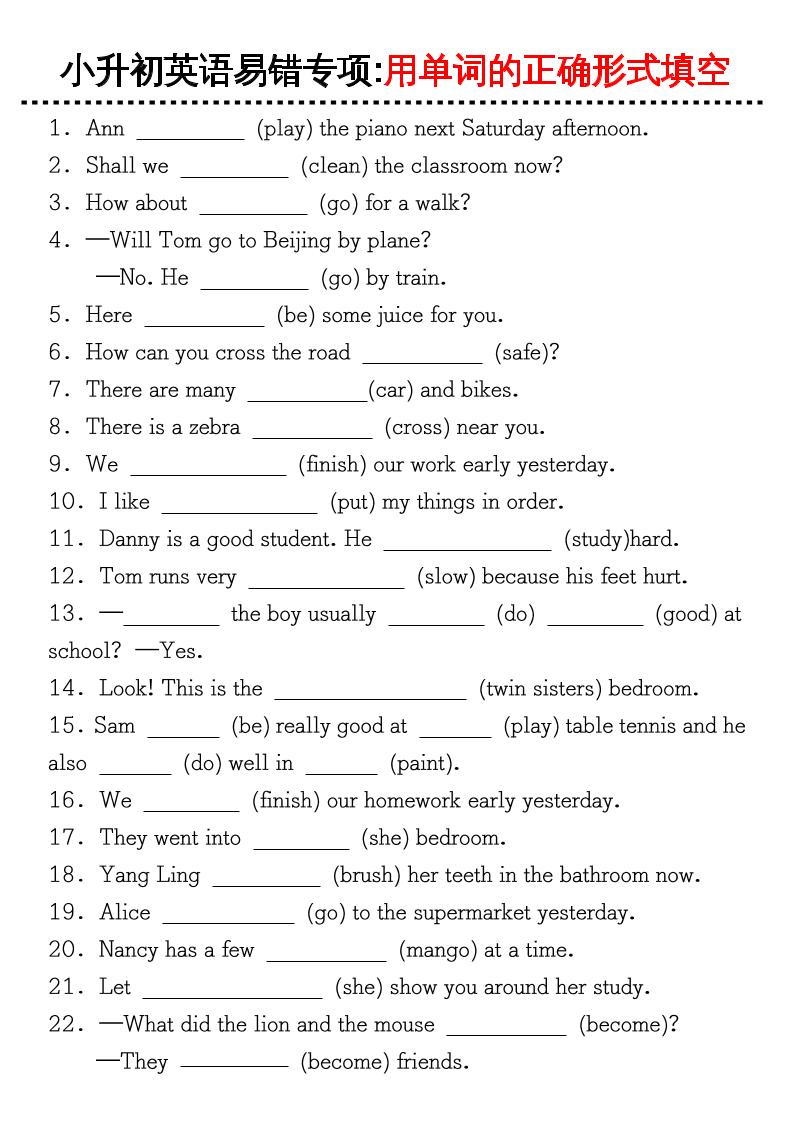 《小升初英语易错专项特训:用单词的正确形式填空》5个月前更新11158《小升初英语易错专项特训:用单词的正确形式填空》此内容为付费资源,请付费后查看R币9.9聚合会员免费立即购买您当前未登录!建议登陆后购买,可保存购买订单。站长QQ:3692823082验证码错误,网址最后 pwd 前面的 ? 换成 &付费资源已售 11 ------预览已结束,还剩17页未读------开通会员后可免费下载高清完整文档 有问题及时联系站长,QQ:3692823082 QQ 群:1040969100~ © 版权声明 重要声明 本站资源大多来自网络,如有侵犯你的权益请联系管理员E-mail:3692823082@qq.com 我们会第一时间进行审核删除。站内资源为网友个人学习或测试研究使用,未经原版权作者许可,禁止用于任何商业途径!请在下载24小时内删除! 如果遇到付费才可观看的文章,建议升级终身VIP。全站所有资源“任意下免费看”。本站资源少部分采用7z压缩,为防止有人压缩软件不支持7z格式,7z解压,建议下载7-zip,zip、rar解压,建议下载WinRAR。 THE END六年级英语# 福缘缘 点赞58 分享QQ空间微博QQ好友复制链接收藏