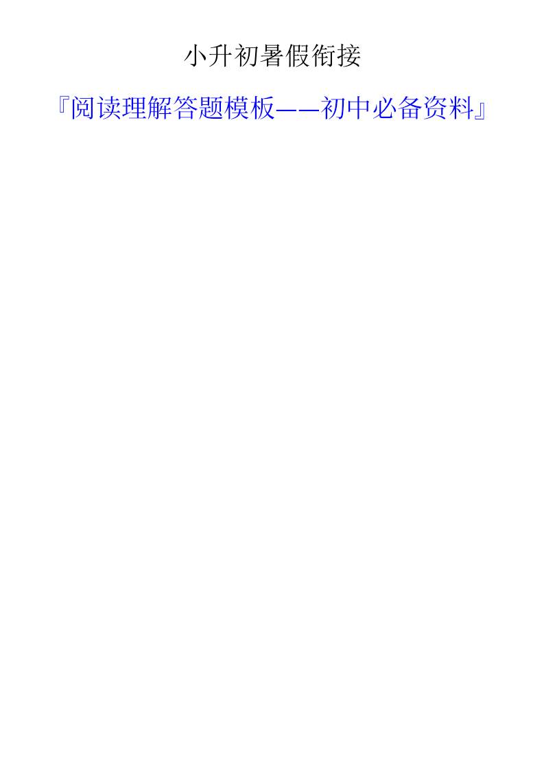 小升初语文暑假衔接阅读理解答题模板-小升初语文4个月前更新9651小升初语文暑假衔接阅读理解答题模板-小升初语文此内容为付费资源,请付费后查看R币9.9聚合会员免费立即购买您当前未登录!建议登陆后购买,可保存购买订单。站长QQ:3692823082验证码错误,网址最后 pwd 前面的 ? 换成 &付费资源已售 11 ------预览已结束,还剩4页未读------开通会员后可免费下载高清完整文档 有问题及时联系站长,QQ:3692823082 QQ 群:1040969100~ © 版权声明 重要声明 本站资源大多来自网络,如有侵犯你的权益请联系管理员E-mail:3692823082@qq.com 我们会第一时间进行审核删除。站内资源为网友个人学习或测试研究使用,未经原版权作者许可,禁止用于任何商业途径!请在下载24小时内删除! 如果遇到付费才可观看的文章,建议升级终身VIP。全站所有资源“任意下免费看”。本站资源少部分采用7z压缩,为防止有人压缩软件不支持7z格式,7z解压,建议下载7-zip,zip、rar解压,建议下载WinRAR。 THE END六年级语文# 福缘缘 点赞51 分享QQ空间微博QQ好友复制链接收藏
