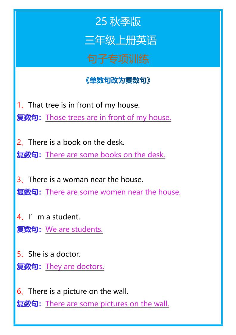 【2025秋新版】三年级上册英语句子专项训练2个月前更新11845【2025秋新版】三年级上册英语句子专项训练此内容为付费资源,请付费后查看R币9.9聚合会员免费立即购买您当前未登录!建议登陆后购买,可保存购买订单。站长QQ:3692823082验证码错误,网址最后 pwd 前面的 ? 换成 &付费资源已售 8 ------预览已结束,还剩1页未读------开通会员后可免费下载高清完整文档 有问题及时联系站长,QQ:3692823082 QQ 群:1040969100~ © 版权声明 重要声明 本站资源大多来自网络,如有侵犯你的权益请联系管理员E-mail:3692823082@qq.com 我们会第一时间进行审核删除。站内资源为网友个人学习或测试研究使用,未经原版权作者许可,禁止用于任何商业途径!请在下载24小时内删除! 如果遇到付费才可观看的文章,建议升级终身VIP。全站所有资源“任意下免费看”。本站资源少部分采用7z压缩,为防止有人压缩软件不支持7z格式,7z解压,建议下载7-zip,zip、rar解压,建议下载WinRAR。 THE END三年级英语# 冒泡泡 点赞45 分享QQ空间微博QQ好友复制链接收藏