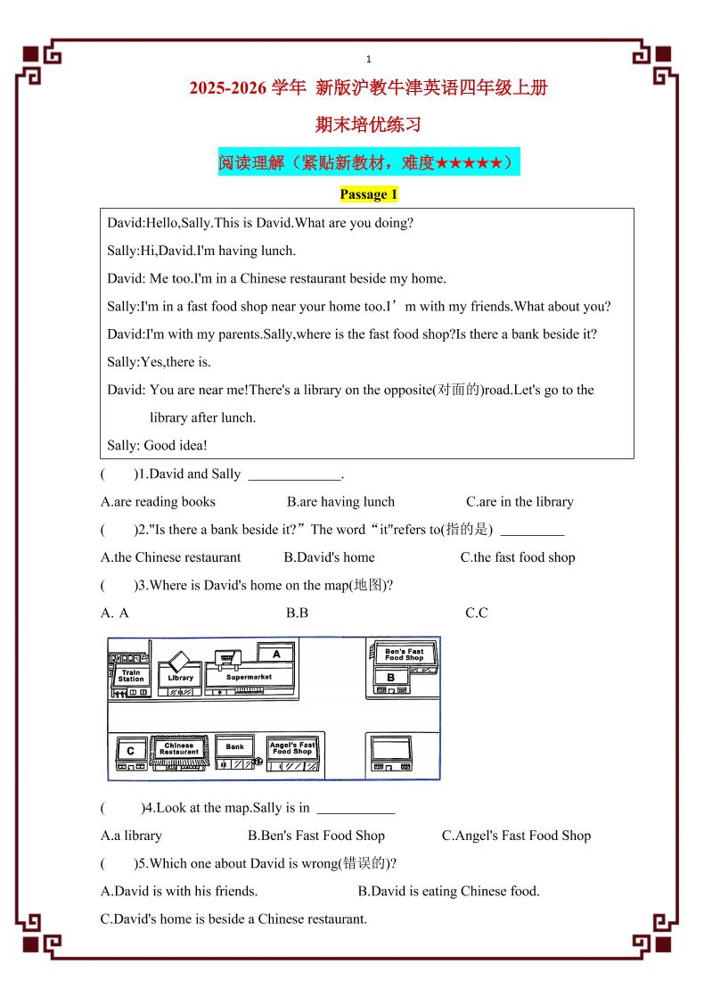 四年级上英语期末阅读理解(专项训练)《沪教牛津版》10小时前更新8844四年级上英语期末阅读理解(专项训练)《沪教牛津版》此内容为付费资源,请付费后查看R币9.9聚合会员免费立即购买您当前未登录!建议登陆后购买,可保存购买订单。站长QQ:3692823082验证码错误,网址最后 pwd 前面的 ? 换成 &付费资源已售 9 ------预览已结束,还剩12页未读------您已获得此文档下载权限,请点击底部下载完整文档 有问题及时联系站长,QQ:3692823082 QQ 群:1040969100~ © 版权声明 重要声明 本站资源大多来自网络,如有侵犯你的权益请联系管理员E-mail:3692823082@qq.com 我们会第一时间进行审核删除。站内资源为网友个人学习或测试研究使用,未经原版权作者许可,禁止用于任何商业途径!请在下载24小时内删除! 如果遇到付费才可观看的文章,建议升级终身VIP。全站所有资源“任意下免费看”。本站资源少部分采用7z压缩,为防止有人压缩软件不支持7z格式,7z解压,建议下载7-zip,zip、rar解压,建议下载WinRAR。 THE END四年级英语 点赞44 分享QQ空间微博QQ好友复制链接收藏