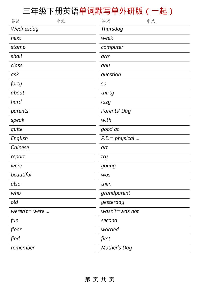 三年级下英语全册单词默写单《外研版(一起)》1小时前更新9041三年级下英语全册单词默写单《外研版(一起)》此内容为付费资源,请付费后查看R币9.9聚合会员免费立即购买您当前未登录!建议登陆后购买,可保存购买订单。站长QQ:3692823082验证码错误,网址最后 pwd 前面的 ? 换成 &付费资源已售 10 ------预览已结束,还剩4页未读------您已获得此文档下载权限,请点击底部下载完整文档 有问题及时联系站长,QQ:3692823082 QQ 群:1040969100~ © 版权声明 重要声明 本站资源大多来自网络,如有侵犯你的权益请联系管理员E-mail:3692823082@qq.com 我们会第一时间进行审核删除。站内资源为网友个人学习或测试研究使用,未经原版权作者许可,禁止用于任何商业途径!请在下载24小时内删除! 如果遇到付费才可观看的文章,建议升级终身VIP。全站所有资源“任意下免费看”。本站资源少部分采用7z压缩,为防止有人压缩软件不支持7z格式,7z解压,建议下载7-zip,zip、rar解压,建议下载WinRAR。 THE END三年级英语 点赞41 分享QQ空间微博QQ好友复制链接收藏